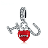Romántica declaración de amor, Charms colgante de Plata 925 con letras y corazón rojo.