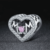 Charms Plata 925 con forma de corazón y la palabra MOM en su interior, delicado mini zircon rosa